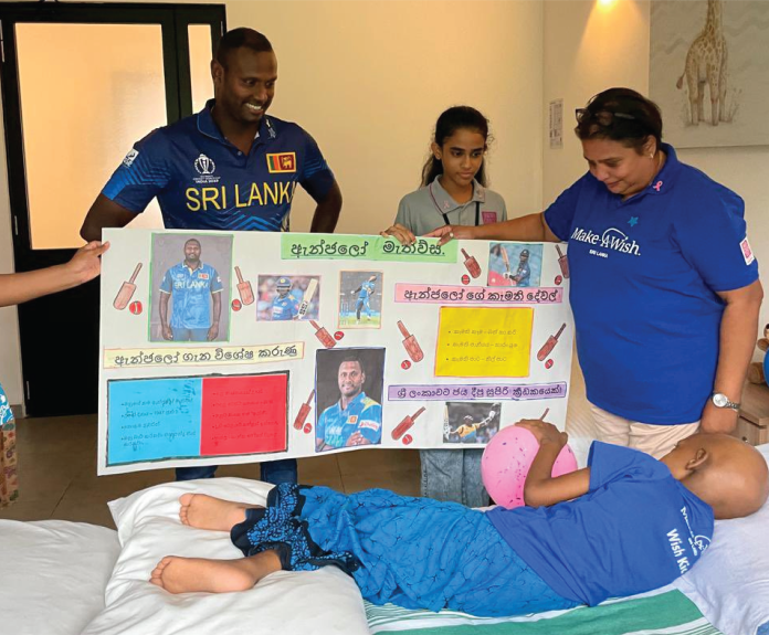 Sri Lankan cricketer Angelo Mathews has visited a terminally ill young fan at an invitation extended by the Indira Cancer Trust under its Make-A-Wish campaign.