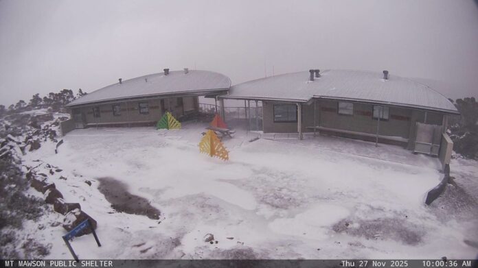 Tasmania experienced snowfall again on Thursday morning — the fifth time this month — continuing what has been an unexpectedly cold November across the southern states. The persistent cold may soon intensify, with another strong front expected just in time for summer’s arrival.