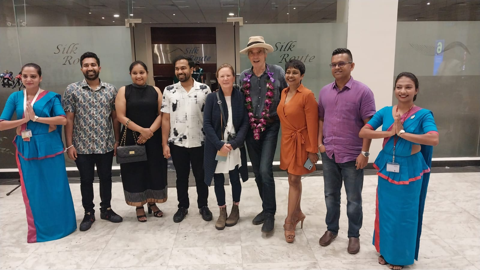 Upon arrival, Irons was welcomed by Harendra Wijewardene, Deputy Director of the Tourism Promotion Bureau, and Chaminda Munasinghe, Assistant Director of the International Filmmaking and Promotion Division.