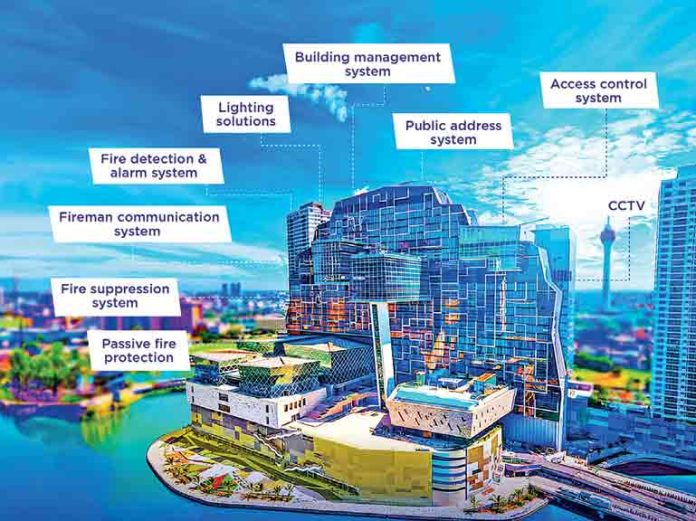The project also includes a KNX-based lighting control system, access control with RFID, biometrics, and vehicle recognition, a robust CCTV network with remote monitoring, and an IP-based Public Address System for instant communication.