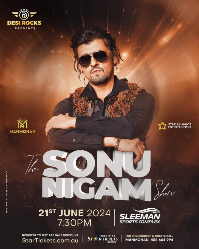 Join us for an unforgettable evening on June 21, 2024, from 7:30 pm onwards at Sleeman Sports Complex, as Desi Rocks proudly presents a collaboration with Manmohan and Star Alliance Entertainment – The Sonu Nigam Show. Prepare for beautiful dance acts and a night to remember, featuring the musical prowess of India’s biggest star, Sonu Nigam.