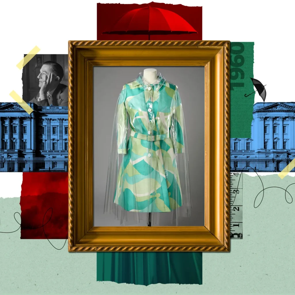 Among the most unexpected items in the exhibition is a clear plastic raincoat from the 1960s, designed by Hardy Amies. Practical yet forward-thinking, it allowed the Queen’s brightly coloured outfits to remain visible even in bad weather. This piece symbolised her awareness of public presence and her subtle embrace of modern fashion trends.