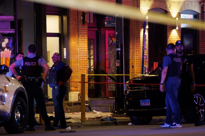 Chicago Police said a dark-coloured car drove past the club around 23:00 local time (04:00 GMT) on Wednesday, when gunmen inside the vehicle opened fire into a crowd of people outside.