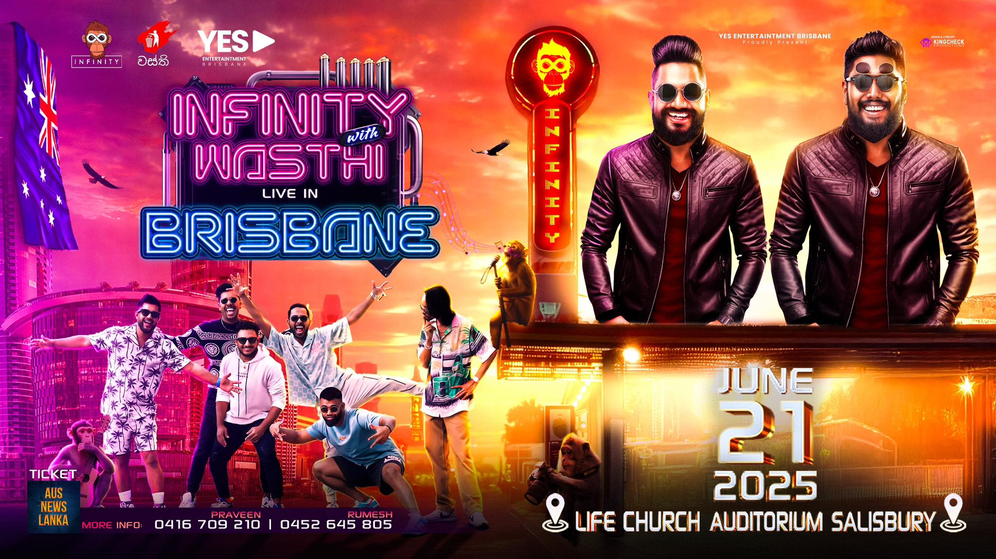 Yes Entertainment proudly presents one of the most anticipated Sri Lankan musical events of the year – Infinity with Wasthi Live in BRISBANE 2025! Set to light up the stage with energy, beats, and a whole lot of Lankan flavour, this electrifying concert promises to be an unforgettable experience for fans of all ages.
