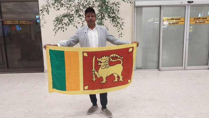 Peiris landed in Colombo aboard Qatar Airways flight QR-658 from Doha, where he was warmly welcomed by his family, friends, colleagues, and representatives from his sponsors.