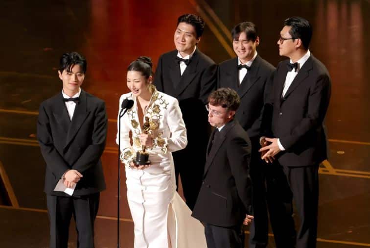 Accepting the award for Best Animated Feature were directors Maggie Kang and Chris Appelhans, along with producer Michelle LM Wong. Kang, a first-time Oscar nominee, dedicated the win “to Korea and to Koreans everywhere,” adding, “For those who look like me, I’m so sorry it took so long for us to see ourselves in a film like this. But it’s here now, and future generations won’t have to wait.”
