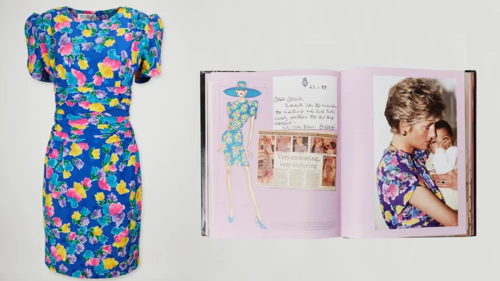 One of the auction highlights is a silk floral day dress designed by Belville Sassoon (pictured top). Expected to fetch between $100,000 and $200,000, the frock was a staple in Diana’s wardrobe and was donned for many official visits and public appearances. It was actually dubbed the Caring Dress, as the princess often wore it to see patients in hospitals, according to designer David Sassoon.