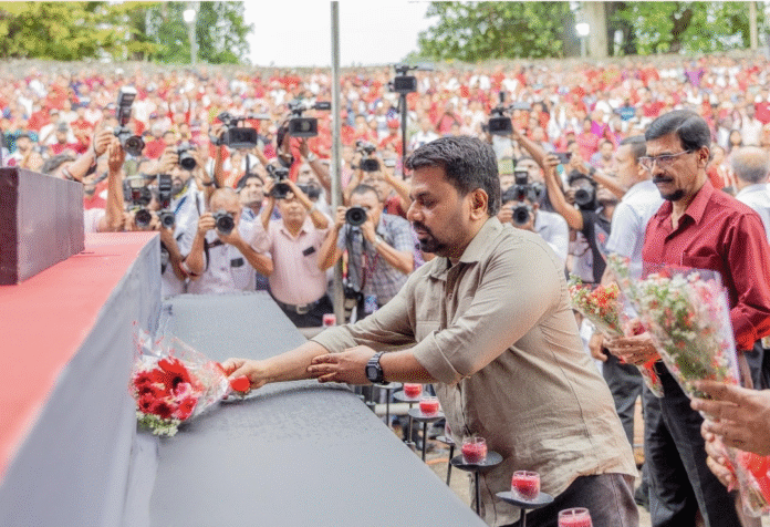 The event, led by President Dissanayake and JVP General Secretary Tilvin Silva, was held this afternoon at the Viharamahadevi Open Air Theatre in Colombo. Ceremonial tributes were paid as party members gathered to remember those who played a role in the movement’s history.