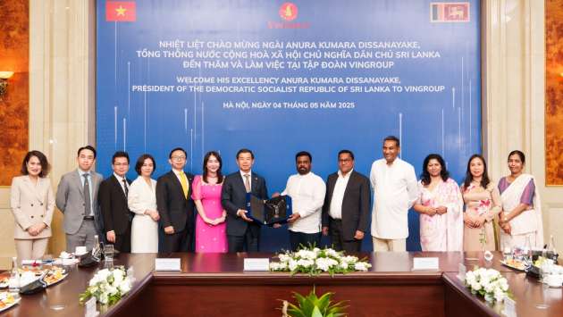 President Dissanayake met with Vingroup’s Vice Chairman and CEO, Nguyen Viet Quang, and his delegation at the company’s headquarters in Hanoi on May 4. He praised Vingroup for its rapid expansion and global success across various sectors, noting that Sri Lanka is committed to creating a welcoming environment for foreign investors.
