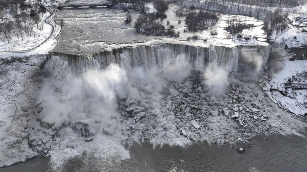Niagara Falls is captivating visitors this week as unusually cold weather has transformed parts of the iconic landmark into a winter wonderland.