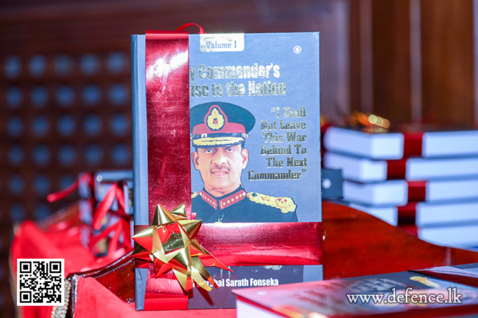 The book “Army Commander’s Promise to the Nation – I Shall Not Leave This War Behind to the Next Army Commander” authored by Field Marshal Sarath Fonseka, was launched on December 9 at the Defence Services College Auditorium in Colombo.