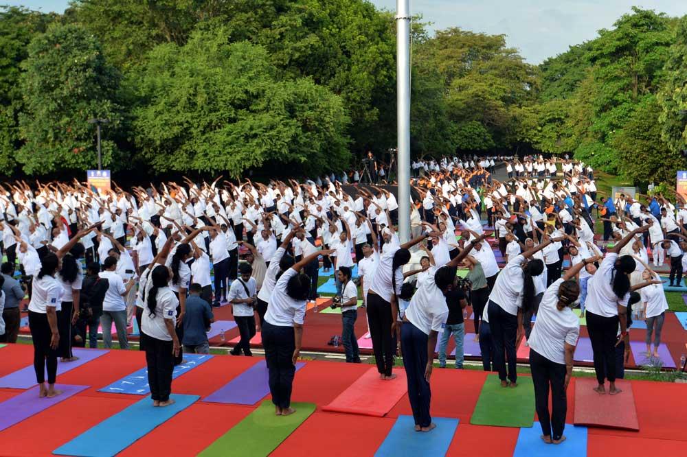 The event, organized by the Indian High Commission in Sri Lanka, aimed to promote the physical, mental, and spiritual benefits of yoga. It featured guided sessions led by experts from some of the country’s leading yoga institutes. Pix by Pradeep Pathirana.