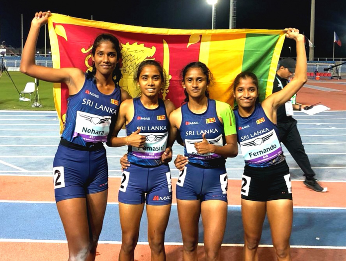 Sri Lanka secured the silver medal in the women’s medley relay event at the Asian Under 18 Athletics Championships, clocking a time of 2:14.25 minutes – a new national youth record.