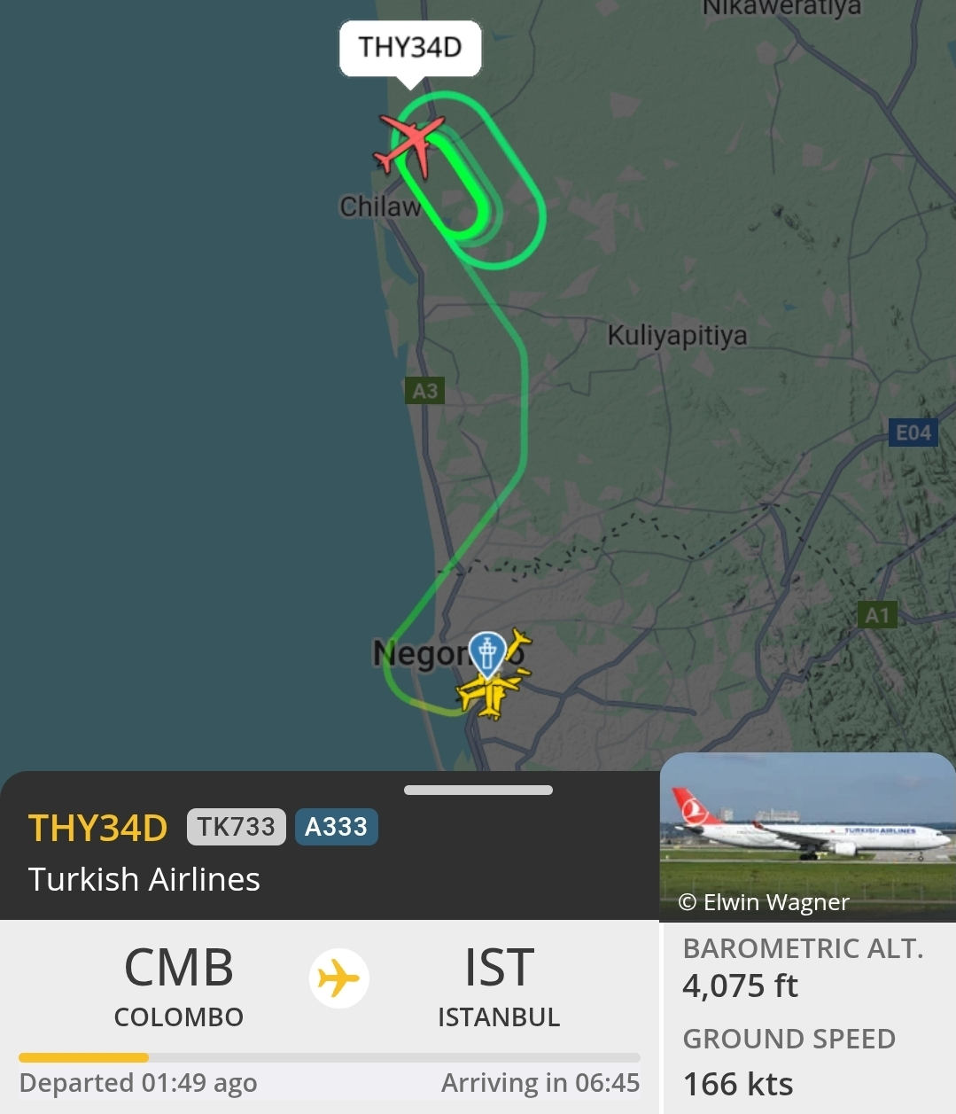 Technical issue forces Turkish Airlines flight to turn back to Colombo