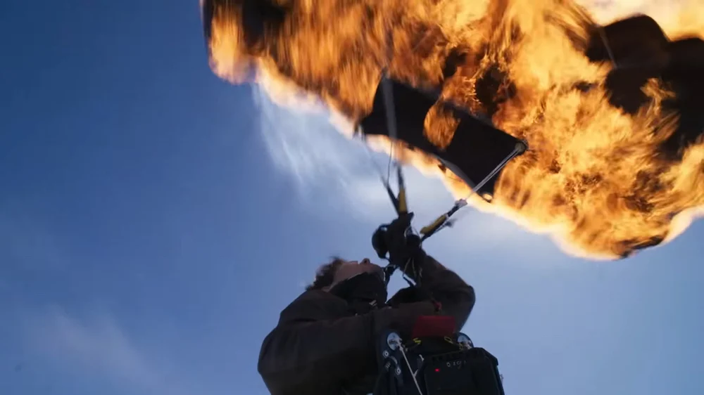 In a video posted to the official YouTube page for Paramount Pictures, the studio behind the film, Cruise is seen discussing logistics for the stunt with stunt coordinators, saying, “I am going to be deploying. If this is twisted while it’s burning, I am going to be spinning and burnt.”