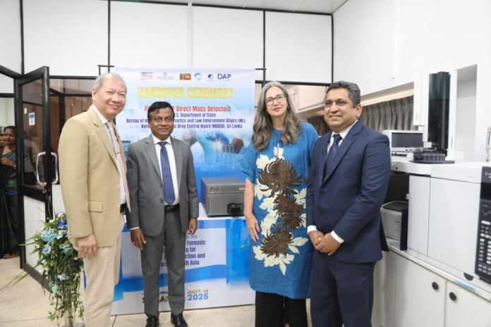 The U.S. Embassy in Sri Lanka, in collaboration with the National Dangerous Drugs Control Board (NDDCB), concluded a two-week regional training initiative focused on identifying and analyzing synthetic drugs and new psychoactive substances, particularly fentanyl and its analogs—substances that have become an urgent global concern. The training culminated in a formal handover ceremony of drug testing equipment, where U.S. Deputy Chief of Mission Jayne Howell, Deputy Minister of Public Security and Parliamentary Affairs Sunil Watagala, and NDDCB Chairman Dr. Indika Wanninayake presided over the presentation of the Radian ASAP instrument to Sri Lankan authorities